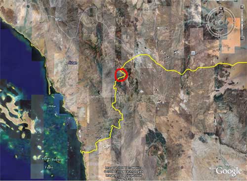 صورة جوية لموقع الرحلة ... الدائرة الحمراء المكان الذي يقع به الصدع الموقع الجغرافي : يقع هذا الصدع ألانكساري في أقصى الجنوب الغربي من المملكة العربية السعودية في أراضي قبيلة بني مالك الواقعة على الحدود السعودية اليمنية ... إلى الشرق من جبال خاشر والعزة وإلى الشمال بقليل من العين الحارة ... وهو انكسار في الحافة الشرقية لأحد روافد وادي ضمد ... ويمكن الوصول إليه بسهولة عن طريق العين الحارة ... حيث أنه يقع على نفس الوادي الذي تقع فيه العين الحارة إلى الشمال منها بأقل من 3 كلم ... ولكن الكثير من الناس لا يعلم بوجوده لعدم شهرته ولكون طريقه يستدعي السير في مجرى الوادي . ويوجد صدع آخر أعظم منه وأكبر إلا أنه داخل الأراضي اليمنية وهو يرفد وادي ضمد ... وبإذن الله سأتطرق له في الرحلات الخارجية قريباً. كانت أول مرة أرى فيها ذلك الصدع عام 1418هـ عندما كنت في زيارة لأحد زملائي في الدراسة من تلك المنطقة وهو الأخ العزيز سليمان بن جابر العزي المالكي ، والذي كانت زيارتي له طريقاً وباباً للتعرف على أمور كثيرة من ذلك الجزء الغالي من بلادي. حيث تعرفت على هذا المظهر وغيره كالعين الحارة وبعض القلاع القديمة التي يعود تاريخها إلى أزمنة مديدة وتعرفت أيضاً على عادات وتقاليد عريقة في تلك المنطقة وعلى أنماط سكنية غاية في القدم ... الأمر الذي دفعني للقيام ببعض البحوث الاجتماعية والأمنية هناك ... والتي كان من أهمها البحث الذي كان يحمل العنوان ( القات والأسلحة عبر الحدود السعودية اليمنية دراسة جغرافية واقعية تعالج مشكلة التهريب بين قبيلتي ال عياش اليمينة وبني مالك السعودية ) ... فمن خلال ترددي بسبب ذلك البحث عرفت المنطقة معرفة تفصيلية وخاصة الشريط الحدودي الذي يقع عليه وادي ضمد الذي اسميته الوادي الأحفوري ... وبإذن الله ستكون هناك رحلة خاصة عن ذلك أطرحها في حينها بعنوان قهوة المهربين. أعود إلى رحلتنا القصيرة والتي كان بصحبتي فيها أخي إبراهيم والصديق العزيز خالد الحقباني محاولين خلالها السير داخل هذا الصدع للوصول إلى طرفه الآخر سأترككم مع الصور وسيكون التعليق أسفل الصورة.
