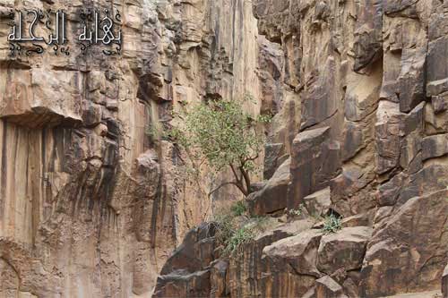 صورة للأخ خالد أثناء صعوده الحافة الغربية للصدع أثناء صعودنا التقطنا العديد من الصور لبعض النباتات التي خرجت من قلب هذا الصخر والتي كان من أبرزها شجرة العدنة