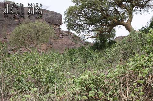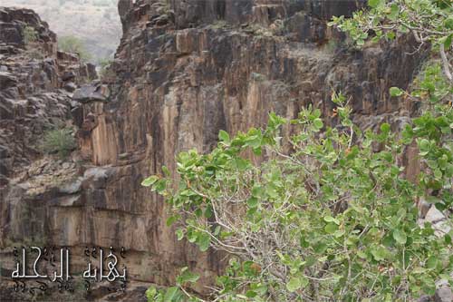 وجدنا في الأعلى مجموعة من الأشجار والغطاء النباتي الأخضر عندما وصلنا إلى نهاية الصدع عدنا أدراجنا وركبنا سيارتنا لنذهب إلى الجهة الأخرى ... وبالفعل ذهبنا وكان الهدف تسجيل إحداثياتها من الجهة الشمالية الشرقية ... ومع الأسف الشديد كان في أحدى نقاط حرس الحدود القريبة من المدخل الذي قصدناه والتي هي خلفا منه كان رجل أمن رفض أن يتفاهم معنا ورفض أن نصور ذلك المدخل علماً أننا لسنا على الحدود ... ليس لسبب وإنما لأننا غرباء على المنطقة ولأننا نتمشى وهو يعمل كما فهمناه من قوله ... امتثلنا لأمره ، فعدت مع الوادي وسرت بعيداً عن تلك النقطة بين الصخور لألتقط صوراً للمدخل .. فأخذ رجل الأمن يصرخ علينا من بعيد بقوله : ( ارجع أو أطلقت عليك النار ... ) فيا سبحان الله حز ذلك في نفسي كثيراً عندما رأيته يسيء التصرف معنا مستخدماً صلاحيات لا مبرر لها إلا أن يظهر الأمر والنهي في غير موضعه.. ومثل هذه الأمور تتكرر كثيراً حول تلك المناطق لست أعلم ألجهل أم لحاجة في النفس .. علماً أن السيارة وأصحابها لا تحمل مظهر مهرب أو مجرم .. بل يعرف أننا سياح في أرض وطننا... فلا عجب عندما مررت بآخر وحاول مصادرة جهاز GPS وعدسة الكاميرا لعدم معرفته ماهيتها. أتمنى أن يخلص كل رجل أمن ومواطن لبلده وأن يوضع الرجل المناسب في المكان المناسب.