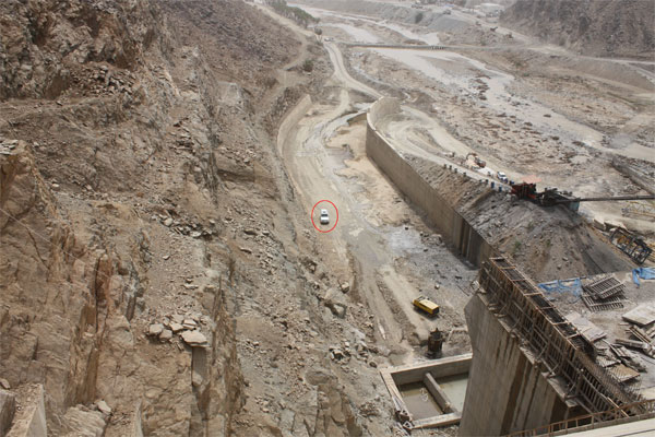 صورة جانبية للسد ونحن في طريق الصعود ... المسافة بين الجانبين 340م
