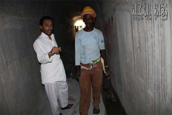 في الداخل نفذ بنا أحد الأنفاق إلى هؤلاء الذين يعملون في منتصف السد