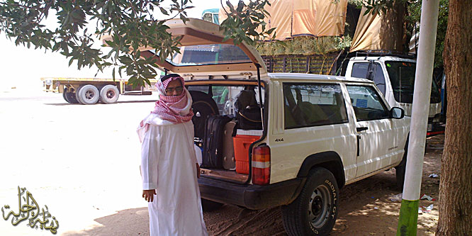 بالقرب من الموقع محطة وقود على الطريق يوجد بها مكان للراحة والنوم انطلقنا منه نحو الموقع