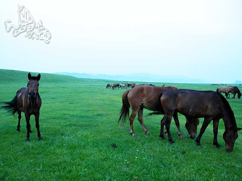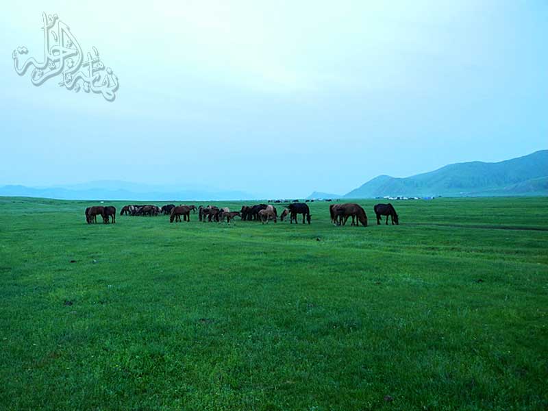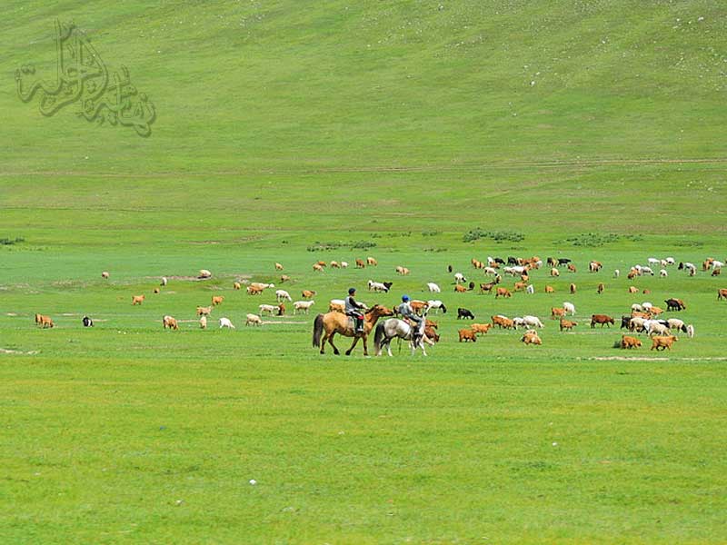 من حين إلى آخر نرى الرعاة المغول يتجولون على خيولهم خلف قطعانهم الجميلة