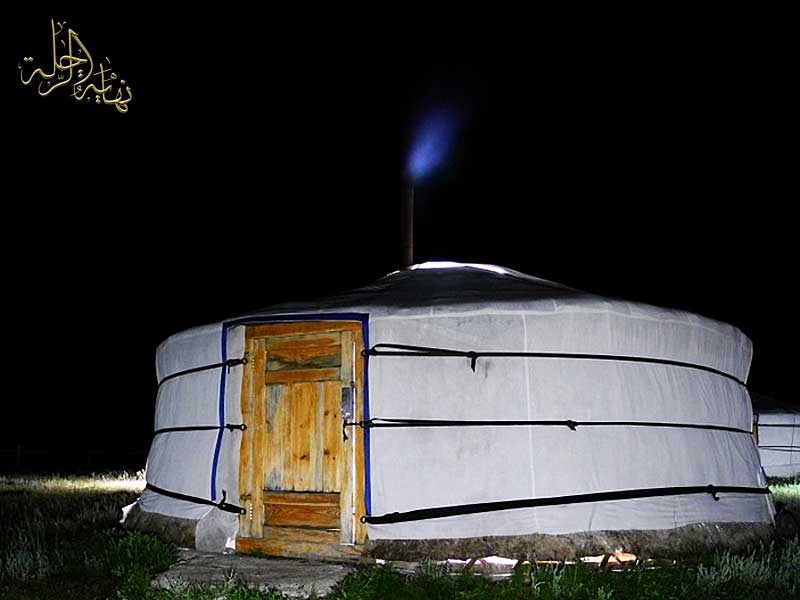 في البداية نصبت خيمة لي ولمرافقي قرب مجموعة خيام مغولية من أجل قضاء ليلنا القصير البارد الذي لا يتجاوز 6 ساعات ..