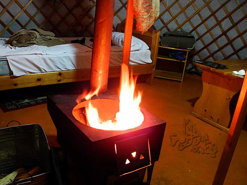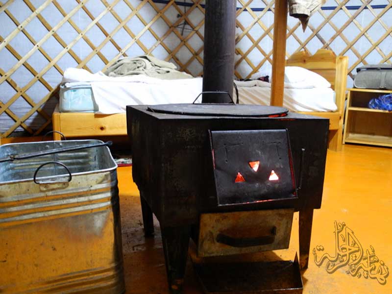 في الداخل موقد للتدفئة والطبخ