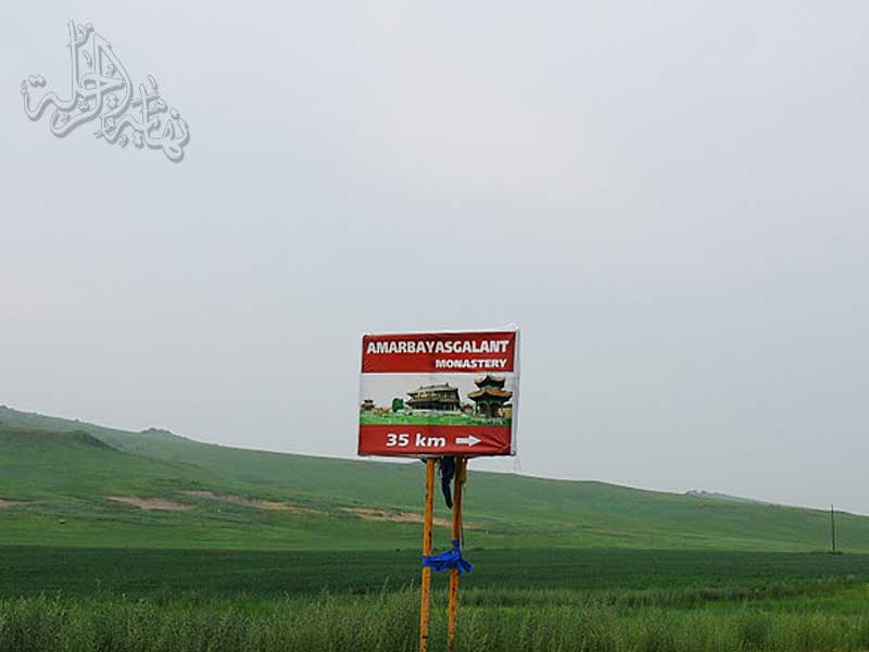 على الطريق مررنا بهذه اللافتة والتي توضح مفرق وجهتنا نحو الوادي الذي أردت أن أقصده ... وبدا لنا بأن فيه معلم مميز ودير قديمة من تراث البوذيون في منغوليا