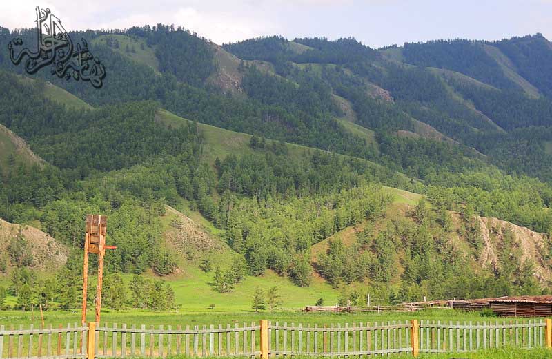 حول هذه القرية وقبلها بمسافة لاحظت اختفاء الخيام المغولية بشكل مفاجئ وتزايد مساكن الخشب حيث تتوفر الأشجار التي يستخدمها الإنسان لبناء هذه المنازل الرائعة لا أنسى بأن أذكر بأن كل هذه المناطق التي مررنا بها في منغوليا تكسوها الثلوج خلال الشتاء الذي يمتد 8 أشهر ... شتاء طويل وقاسي جداً وصيف بارد معتدل قصير ... كانت رحلتي هذه لمنغوليا في ذروة فصل الصيف من العام 1433هـ ... والآن أنا أكتب هذه التقرير في فصل الشتاء ،، وبينما كنت أراقب درجات الحرارة من موقع www.accuweather.com وجدت درجة الحرارة في هذه المنطقة التي نتابعها في الرحلة -33ْ تحت الصفر .. فسبحان الله الذي جعل الإنسان يتكيف مع هذا المكان القاسي مناخياً .. الآن أواصل معكم الرحلة نحو نهر Seleng وسنشاهد تغير مفاجئ في طبيعة الأرض فإلى جانب تلك المروج والجبال والأنهار سنجد الكثبان الرملية الجميلة التي تنتشر بشكل متقطع ... الأمر الذي يستوقفني للإقامة يوم وليلة في قرية صغيرة عند جسر عبور هذا النهر الجميل.