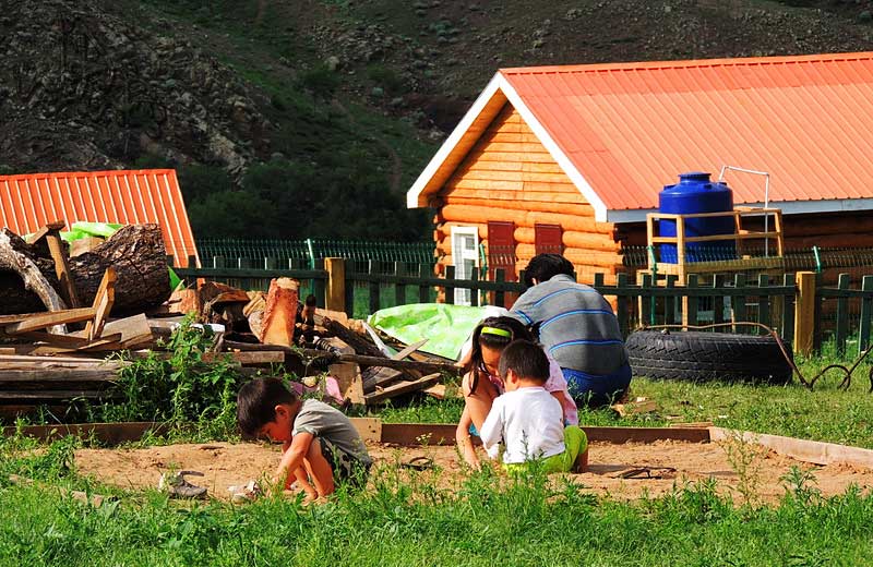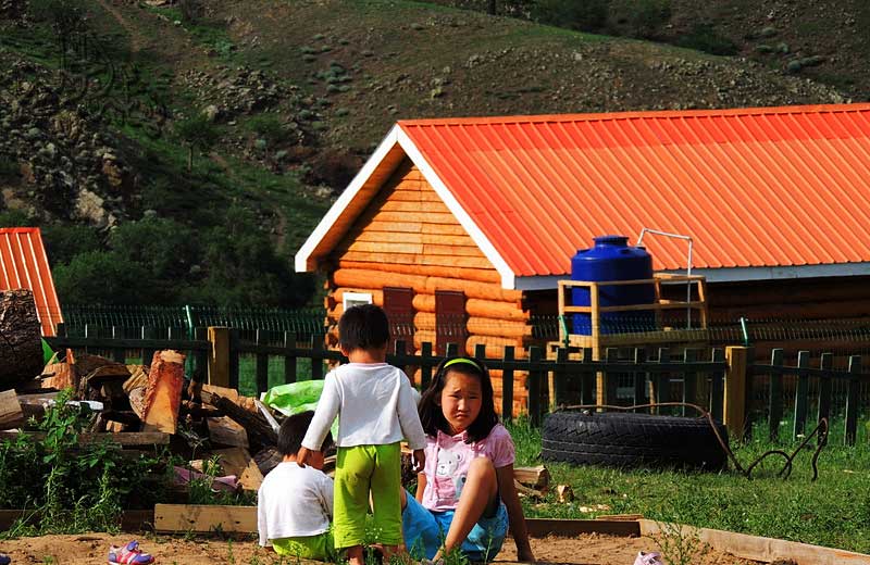 من حين لآخر نشاهد منازل مبعثرة وقرى صغيرة يعيش أهلها حياة الريف الممزوجة بالبداوة المنغولية