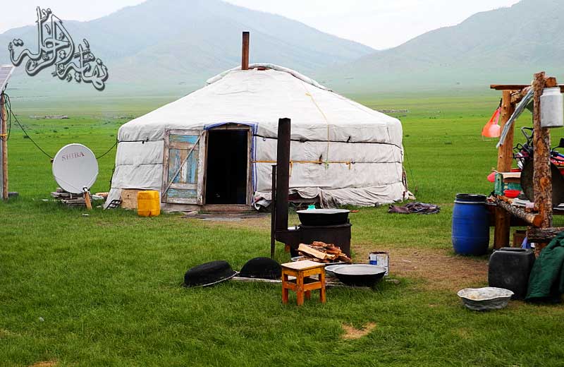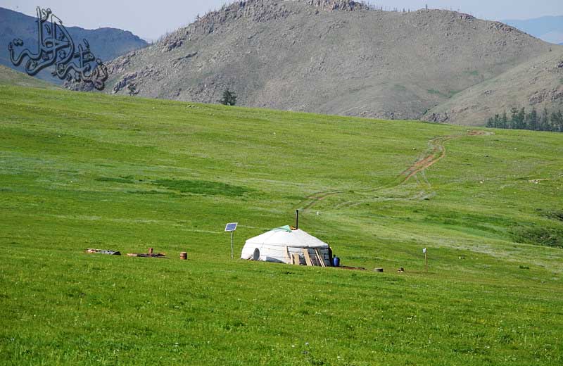 نشاهد تارة بعد تارة بعض منازل البدو المغول حيث المراعي الوافرة