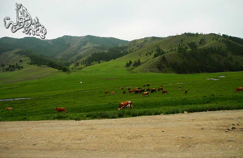 في صباح اليوم التالي ، بعد تناول وجبة الإفطار غادرنا تلك العائلة عبر هذه المروج الخضراء .. مارين بخيام مغولية تارة وببيوت خشبية تارة وبمزارع صغيرة تارة أخرى .. نواصل نحو الوجهة مع الصور