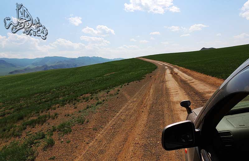 نواص مع الصور بعد العودة إلى الطريق البري شرق قرية Uliastaj