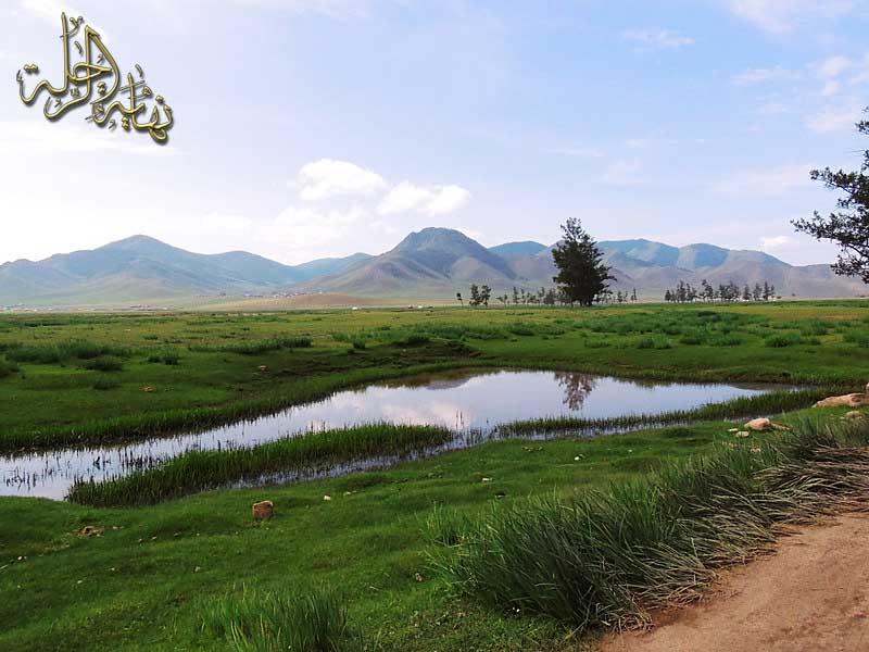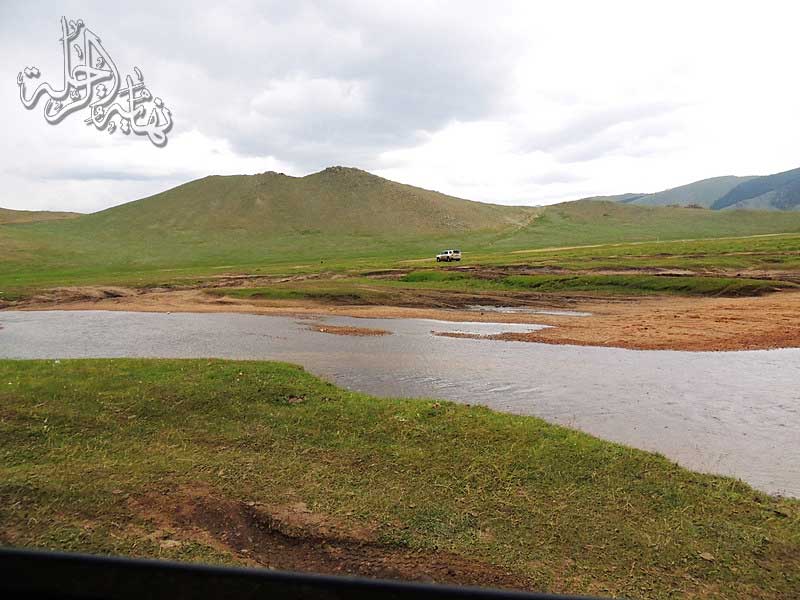 أهلاً بكم من جديد ... أكمل معكم الرحلة في براري منغوليا محاولاً الاختصار قدر الإمكان مع مراعاة أن أبقي الصورة واضحة لخط السير ليتسنى لكل متابع الاندماج في الرحلة بكل سهولة ويسر.. خرجت بعد قضاء يومين في بلدة أولجي متوجها نحو الشرق للعودة إلى وسط براري منغوليا عبر طرق برية تخترق سهوباً وسهولاً خضراء تتخللها الكثير من الأنهار والأودية والجداول والتلال والبحيرات ... كانت الأنهار والطين تشكل هاجساً مخيفاً يقطع الطريق ويؤخر السير خاصة عندما لا توجد أماكن مطروقة من قبل، لكن وبحمد لله تم التغلب عليها بكل يسر وسهولة ... المسافة من أوجلي إلى وسط منغوليا مسافة طويلة لا يكفيها يوم كامل لاجتيازها .. لذلك كانت هناك نقاط توقف لن أتحدث عنها كثير ، بل سأكتفي بذكر بعضها وقليل من الصور عنها لتشابه أنماطها الجغرافية ، كليلة بتناها في الطريق عند أسرة مغولية تعيش في معزل عن الجميع ، وليلة أخرى قضيناها عند أسرة مشابه .. ولكي أخفف من تكدس الصور في تقرير الرحلة ... سوف أقتصر على أهم المواقع والمناطق في ما تبقى من الرحلة ... لذلك وجهتنا الآن نحو بحيرة صغيرة وسط منغوليا تسمى بحيرة Terkh Lake والتي تقع في منطقة بركانية تسمى Khorgo حيث الفوهة والحمم البركانية منتشرة هناك ...
