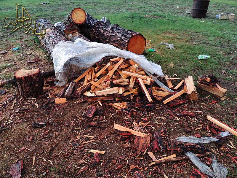 حطب أعد لإشعال النار قرب الخيمة