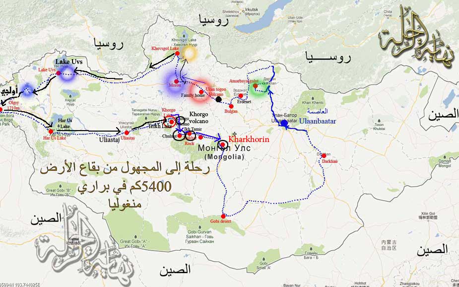 بسم الله الرحمن الرحيم "منغوليا" رحلة إلى المجهول من بقاع الأرض المرحلة الثامنة: من بحيرة Terkh Lake إلى مكان عاصمة التتار كاراكوروم Kharkhorum مروراً بـ بركان Khorgo volcano ثم أخدود chulunt وبعده صخرة Ikh Tamir المقدسة عندهم
