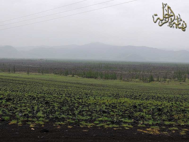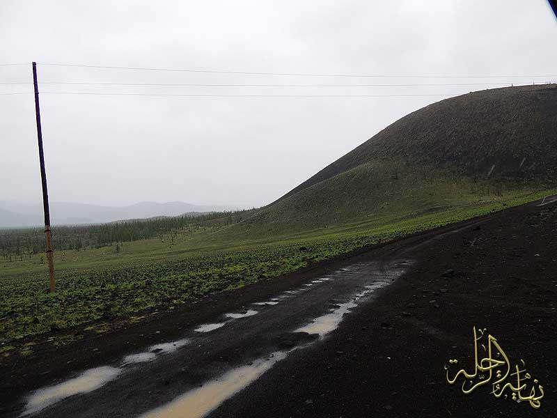 أعزاء الكرام أهلاً بكم معي من جديد لنواصل رحلتنا في براري منغوليا الجميلة ... خرجت من منطقة البحيرة السابقة بعد ليلة ماطرة ونهار جميل محتسباً الأجر عند الله سبحانه وتعالى في مرافقي .. ذاكرا ما حصل بيني وبينه لكم بغية إيصال رسالة قصيرة مفادها لا تبخل على نفسك وحاول أن تسعى ولو بالقليل من خلال معاملتك وقولك وفعلك في نقل صورة عن دينك .. قد يهتدي على يدك شخص ويكتب لك أجر عظيم .. وقد يتبعه خلق عظيم .. أسأل الله أن يحسن نوايانا وأن يغفر لنا .. وأنا والله لم أنوي دعوة ذلك الشاب للإسلام أو أجتهد في أمره قبل سفري ... وإنما سارت الأمور كما أرادها الله سبحانه وتعالى .. أسأل الله أن يثبت قلبه ويدله على الحق ... أعود معكم إلى مسار الرحلة ... ما أن سرنا حتى وصلنا إلى منطقة بركانية تسمى كورقو بها بركان خامد Khorgo volcano وحمم منتشرة في كل مكان ..