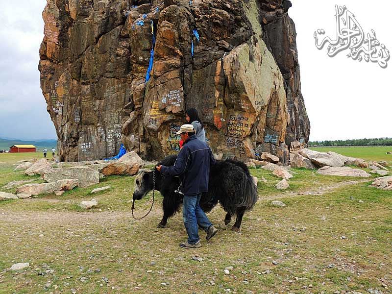 مررنا بصخرة يسمونها Ikh Tamir يعتقد البعض أنها مقدسة .. ويحج إليها بعض الناس ليطوفوا بها سيراً أو على الدواب كما سول لهم من البوذيين وخاصة أهل التيبت .. والبعض يعتبرها نصب تذكارية لمعتقدات وخرافات متنوعة