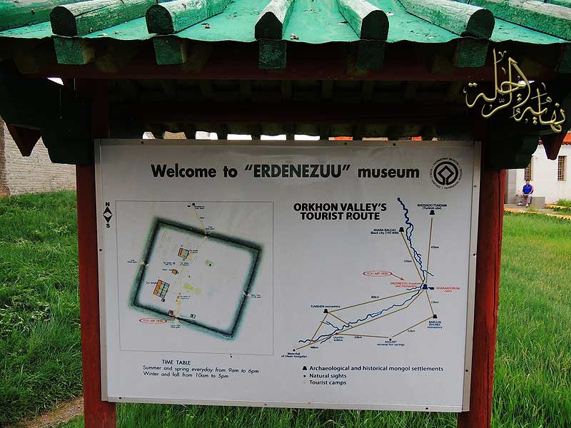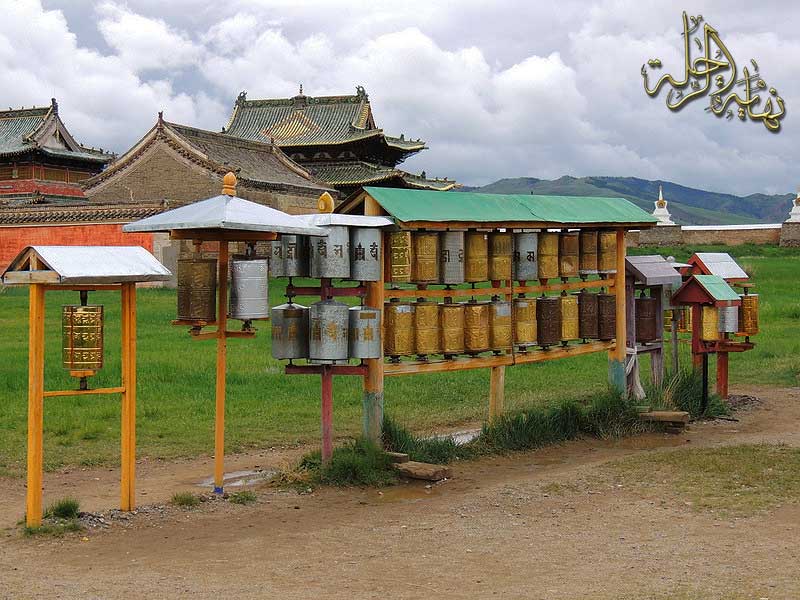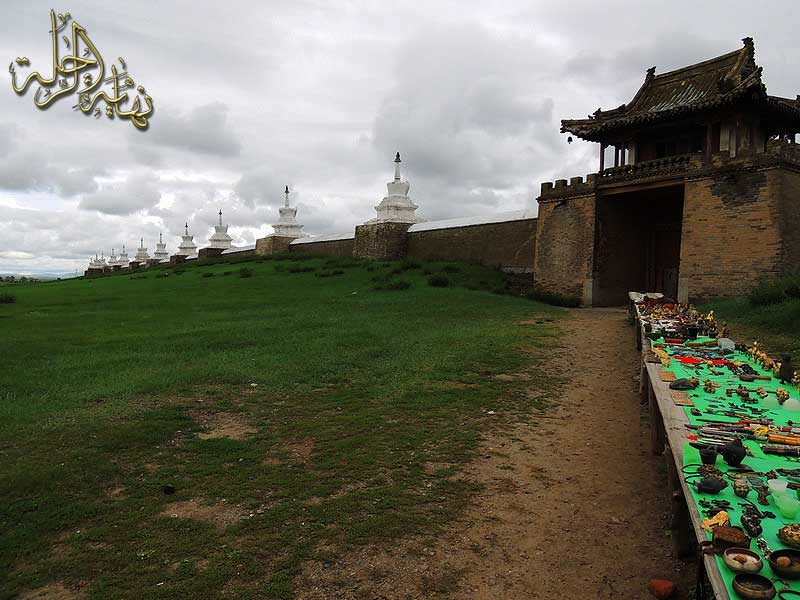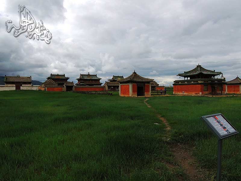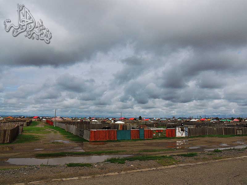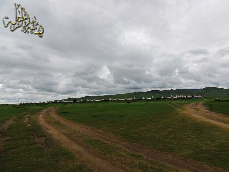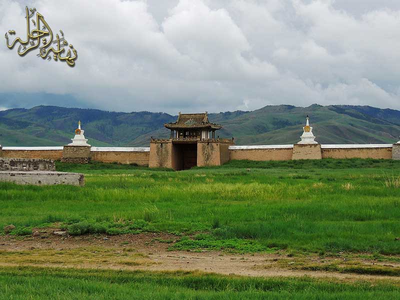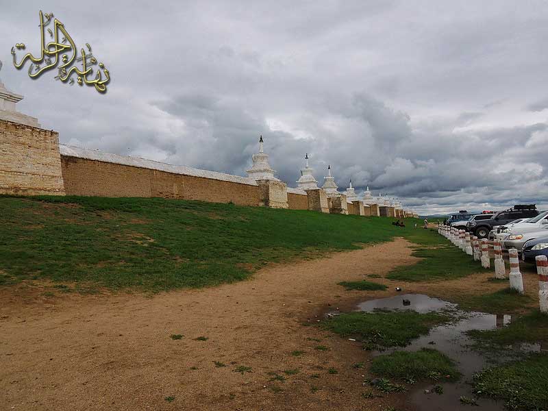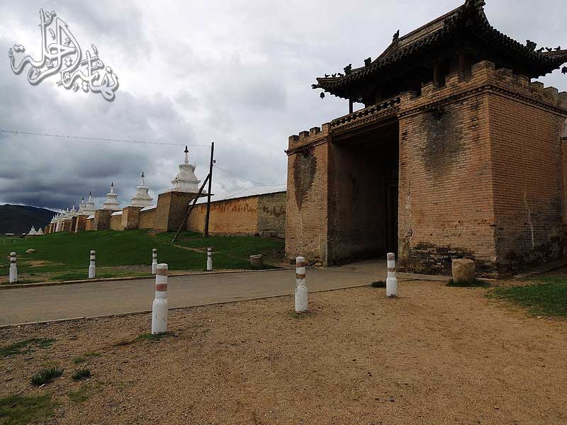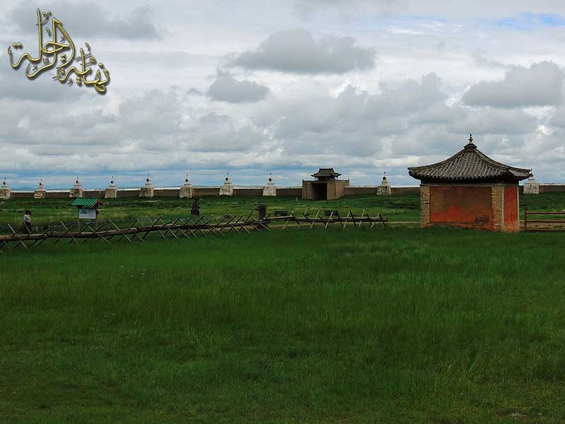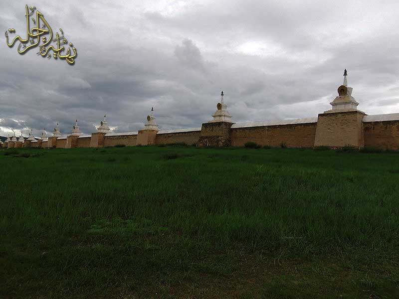 وصلنا إلى عاصمة المغول سابقاً المسماة حاليا بمدينة Kharkhorum والتي صارت بلدة صغيرة منازل أهلها من الخشب .. لا تكاد تذكر حتى في وسائل الإعلام ... في هذه البقعة كان يعيش جنكيز خان وهولاكو ومن هنا كانت جيوشهم الهمجية تغزو العالم ... ولعل أسوء ما أصاب المسلمين منهم غزوهم للعراق وقتلهم لأكثر من مليون مسلم .. وزحفهم على بلدان عديدة في آسيا ... اليوم لم يعد شيء من ذلك المجد والجبروت في هذه الأرض وإنما الضعف والخجل والقلة.. دفنت عاصمة التتار الحقيقية تحت الأرض ... ولم يبقى سوى قلعة واحد بنيت بعدهم في زمن طويل بعد زوال حكم هولاكو .. فقبل 427 سنة من اليوم بنيت هذه القلعة التي تسمى "دير Erdene Zuu Monastry" بناها البوذيون القادمون من التبت سوف آخذكم على عجالة في هذه المدينة وقلعتها التي أصبحت ديراً يزوره محبي التاريخ والآثار من خلال الصور
