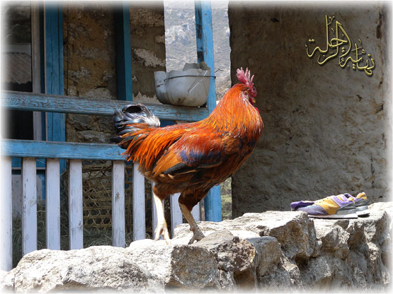 ديك بلدي جميل المنظر الوحيد الذي يرفع صوته بالأذان هنا