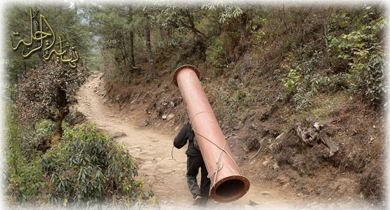 وسائل نقل بشرية جبارة تحمل المؤن والطعام ليعيش سكان القرى بأمان