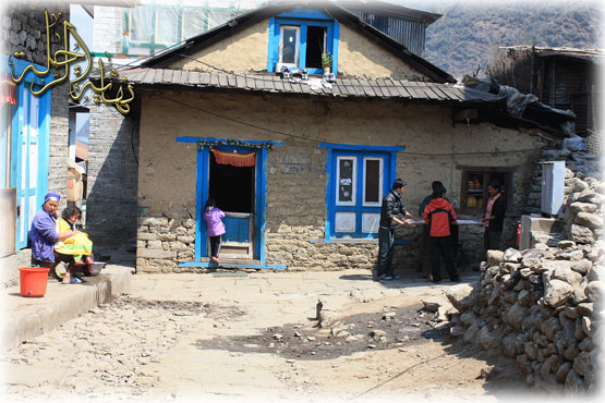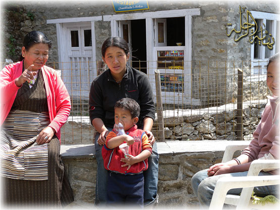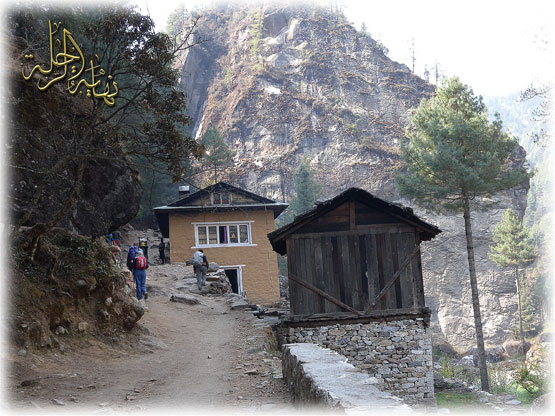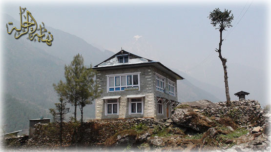 مررت بهذا البيت الذي يملكه نيبالي متعلم يعمل طبيباً لديهم ... وقد أصر على جلوسي مع أبنائه وتناول كوب الشاي معهم وقد كانوا مندهشين لرؤيتي ، حيث أخبرني والدهم أنهم يقولون بأنني لا أشبه السياح الآخرين يقصدون الأوربيين والأمريكان.. فربما كنت مألوفاً لديهم ... وخاصة من معاملتي لهم عند مقابلتهم والتي حرصت من خلالها أن أنقل الصورة الحسنة عن نفسي وديني ووطني.