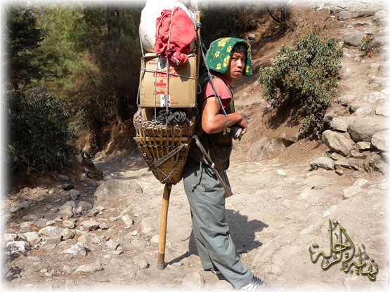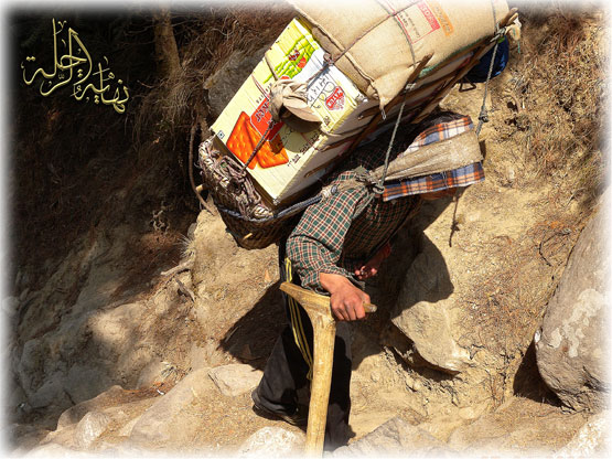 وسيلة جميلة يستخدمها النيبالي عندما يتعب يوقف الحمل على عصا كان يتوكأ بها