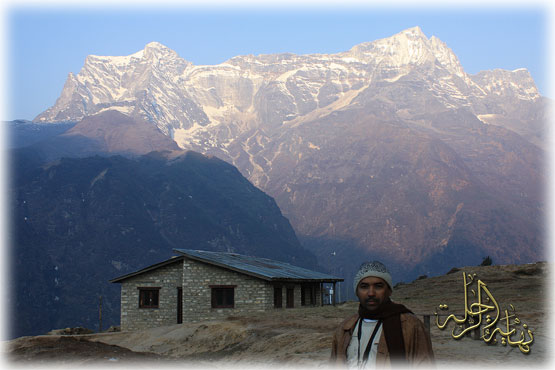 محدثكم وخلفه جبل kongde ri كاملاً بقمتيه الجميلتين
