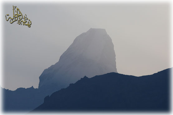 إحدى القمم التي تكسوها الثلوج تطل علينا من خلف الجبال