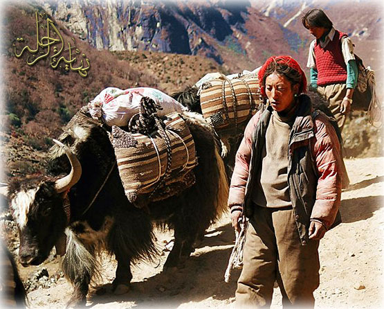 قد يتساءل البعض ألا يستخدمون وسائل نقل أخرى كالحيوانات مثلاً ؟ أقول نعم يستخدمونها ولكنها مكلفة وقليلة لديهم .. وأعتقد أن وعورة المكان وتغير المناخ بين الطلوع والنزول قلص مثل تلك الوسائل ... إلا أني رأيت منها الحمار والجاموس والياك والخيل ولا يمتلكها إلا أصحاب الفنادق والتجار الذين يعملون في خدمة السياح الأجانب وخاصة الغربيين الذين يشكلون أكثر من 90% من رواد السياحة هناك ... وسأعرض أمثلة لذلك