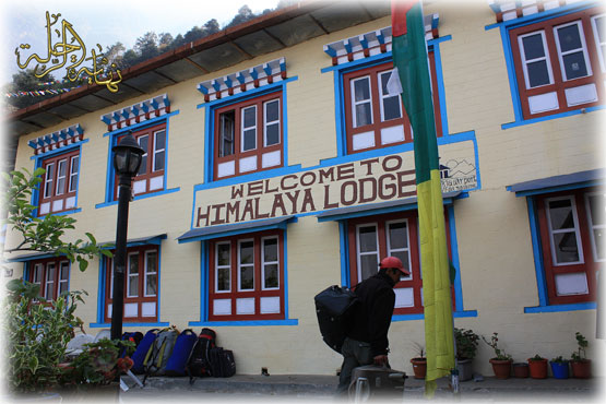هبطنا من الطائرة في تلك القرية الصغيرة لوكلا ذات المناخ الرائع الذي يميل للبرودة بسبب الارتفاع ... وجدت العديد من الفنادق المحلية فذهبت إلى أقربها من المطار ملاصقا له حيث بدا عليه أنه الأرقى ... وقد استأجرت غرفة واحدة فيها سريرين ودورة مياه أدهشني سعرها الذي لم أتوقعه وهو 1.30 دولارا أي حوالي خمسة ريالات فقط لليلة الواحدة.. استرحت لبعض الوقت وتناولت وجبت إفطار مكونة من البيض والجبن والخضار والشاي في مطعم الفندق الرائع. بعد ذلك قسمت حقيبتي إلى قسمين قسم أبقيته في الغرفة التي سأودعها لعدة أيام ... وقسم وضعته في حقيبة تحمل على الظهر وهو عبارة عن معدات التصوير ثلاث كاميرات وعدسات تقريب .. وجهاز GPS وخريطة و بعض الملابس الشتوية خشية البرد ومجموعة من أصابع الشوكلاتة للتزود بالسعرات الحرارية أثناء السير. استأجرت رجلاً نيباليا يجيد الإنجليزية لحمل أمتعتي الخفيفة ومرافقتي في رحلة السير الطويلة ... وقد كانت أجرته لليوم الواحد قرابة 5 دولارات ... وقد زدتها إلى العشرة كما سنعرف لاحقاً السبب ... وقد كان رجلاً طيباً وخدوماً وعلى درجة عالية من الاحترام والتقدير...
