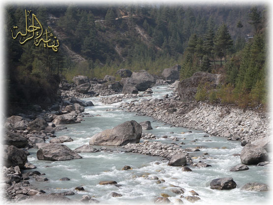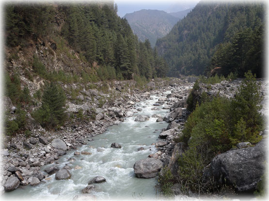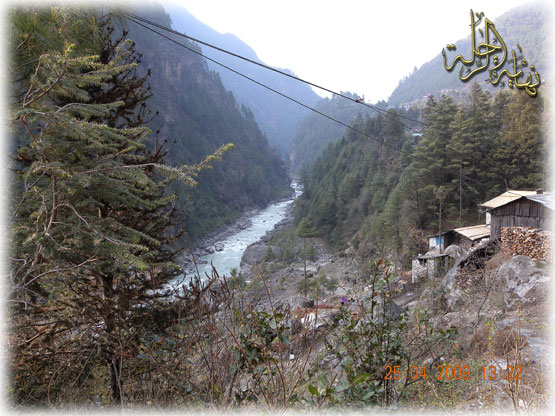 نهر Dudh Koshi Nadi الذي يبدأ من أعالي الجبال حيث الثلوج والذي سنسير قربه مسافة طويلة