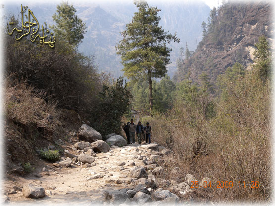 بدأت بعون الله السير على الأقدام عند الثامنة صباحاً تقريباً ... برفقة جامجي النيبالي الذي يحمل أمتعتي من قرية لوكلا الصغير التي أشبه ما يقال عنها أنها عش طائر في قمة جبل ...