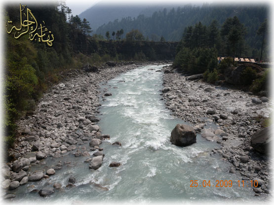 صورة للنهر من أعلى الجسر المذكور ونلاحظ وعورة المكان وجماله الذي أبدعه الخالق