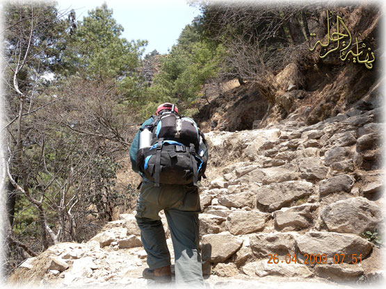صورة لطريق السير ونلاحظ قلة تذبذب الغطاء النباتي هنا بسبب الارتفاع
