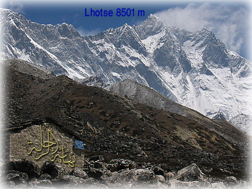 صورة لجبل نوبتسي Nuptse الذي يرتفع 7864م .. والذي يحجب خلفه قمة إفرست بسبب قربه ... صورة مقربة من قرية لوبوتشي