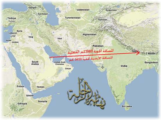موقع نيبال بالنسبة لشبه جزيرة العرب