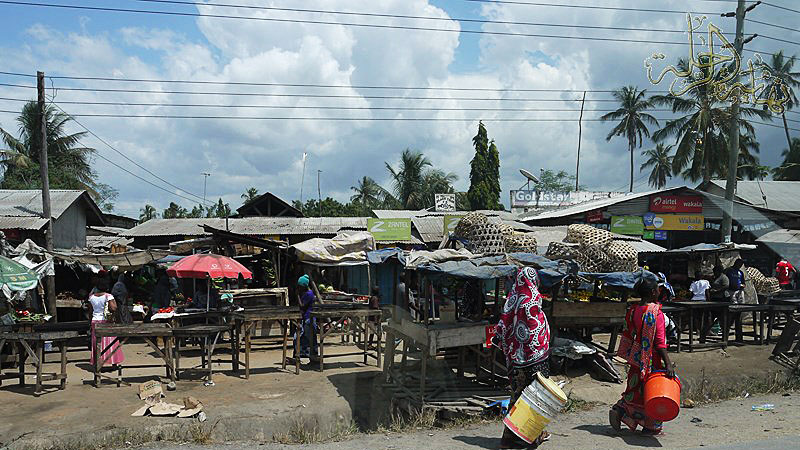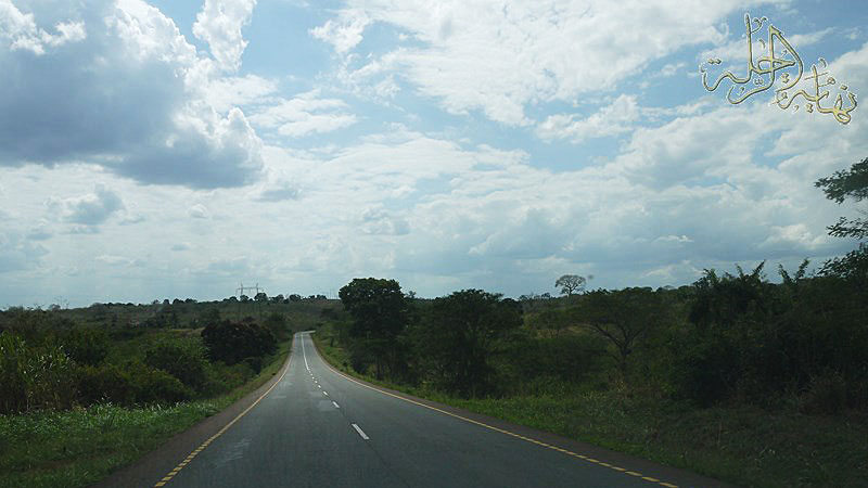 تنتشر المنازل الأفريقية على جوانب الطريق من حين لآخر دون انقطاع