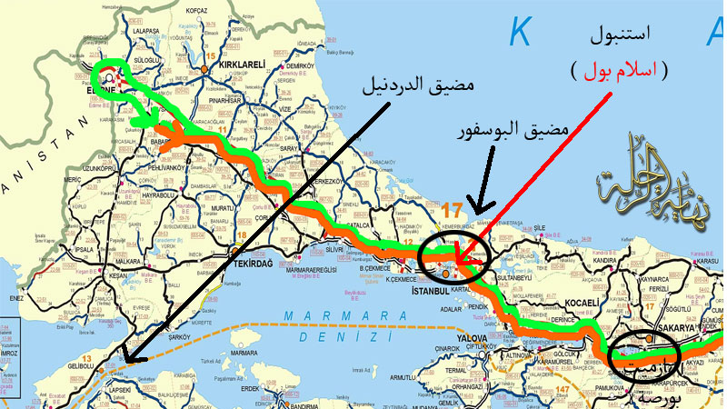 خريطة توضح مسار الرحلة سرنا حتى قبيل وصولنا مدينة زونقولوداك انعطفنا يساراً تاركين خلفنا البحر الأسود لنتجه نحو الطريق السريع الذي يصل بين أنقرة وإسطنبول ثم سرنا عبر الطريق السريع مروراً ببحر مرمره إلى مدينة القسطنطينية ( إسلام بول ) المعروفة حالياً بإسطنبول. والتي كانت مركز دولة الإسلام. وأترككم مع بعض الصور