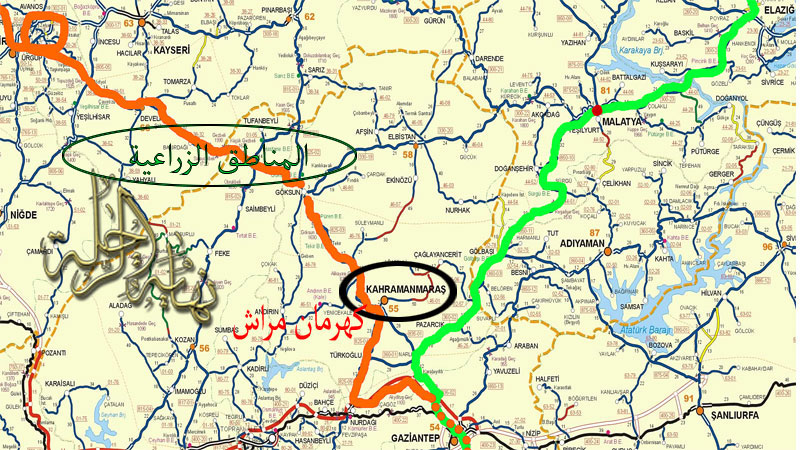 خريطة توضح الحدود والدخول من منفذ عزاز السوري نحو مدينة kilis التركية
