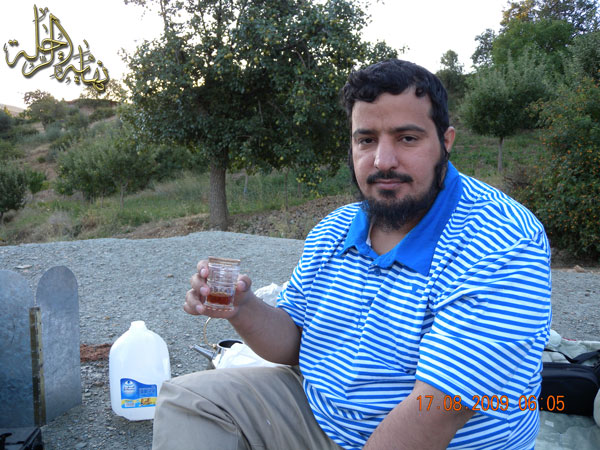 الزميل عبد العزيز التويجري أبو هشام يحتسي الشاي بعد نوم عميق وإفطار شهي