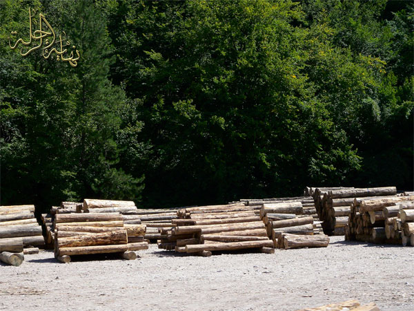 مجموعة أخشاب تقطع من الغابة