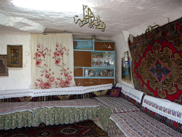 سرنا في هذا الوادي أكثر من 10كم وما انقطعت هذه المشاهد العجيبة ... حتى وصلنا إلى المدينة الجديدة التي قامت وسط هذه المدينة الحجرية القديمة ... وقد دخلنا بعض تلك المنازل وصورتها من الداخل وعجبت لما رأيت فهناك غرف تحتية بها نوافذ ثم درج يصعد لغرفة في الأعلى وهكذا ... وكل ذلك ليس في جبال رملية أو هشة بل في جبال من كتل صخرية صلبة أشد صلابة مما رأيته في مدائن صالح والبتراء. كنت أصور بكاميرا الفيديو وكان القرآن يتلى من مسجل السيارة ... فسمعت صوته امرأة مسنة فهرعت إلي .... وفاجأتني حيث تتكلم الإنجليزية من خلال احتكاكها بالسياح بقولها تعال إلى بيتنا فأنت من عربستان ... وفعلاً ذهبت معها وأحسنت استقبالي .. وأخبرتني أن اسمها فاطمة وأنها تتمنى زيارة مكة والمدينة ... وطلبت مني أن أصور بيتها من الداخل لعلمها بأن ذلك سيعجبني ... قدمت لها هدية متواضعة ... وأخذت تدعو لي عندما غادرت منزلها الحجري الجميل ... بارك الله فيها وأسعدها وبارك في ابنها الصغير وزوجها المسن. والحمد لله على ما نحن فيه من نعم عظيمة ظاهرة وباطنه