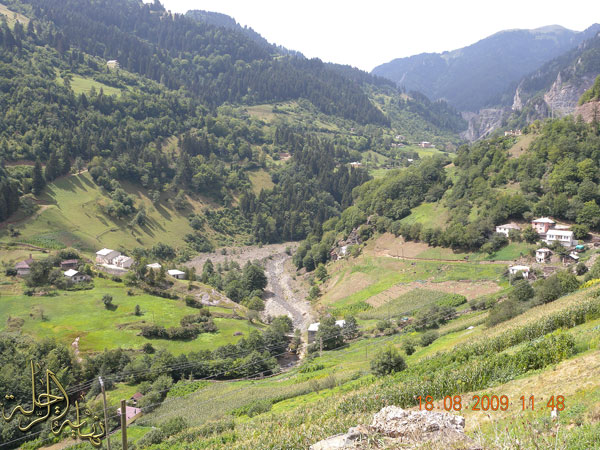 محدثكم على أحد الجسور الخشبة فوق إحدى الجداول أدركنا الليل قبل وصولنا طربزون بحوالي 80كم حيث سرنا في صعود عبر الجبال حتى بلغنا ارتفاعاً زاد عن 2000م فوق مستوى سطح البحر ... وكان الجو شديد البرودة والضباب حتى أننا أصبحنا نسير بسرعة التشغيل إلى أن وصلنا إلى استراحة على الطريق تناولنا بها وجبة عشاء ساخنة ... وعند خروجنا منها سألنا أحدهم بالإشارة عن وجود نزل أو فندق قريب .. فما كان منه إلا أن أومئ لنا اتبعوني ... سار بنا عبر طريق فرعي في وسط الضباب نحو قرية تبعد حوالي 3كم عن الطريق الرئيس ... إلى فندق جميل في منطقة صدمنا بها وسحرنا بجمالها في الصباح ... وكان سعر الفندق حوالي 110 ريالات فقط. أما القرية فهي قرية مشهورة في الشتاء بالتزلج على الجليد قرية ZIGANA انظر الخريطة