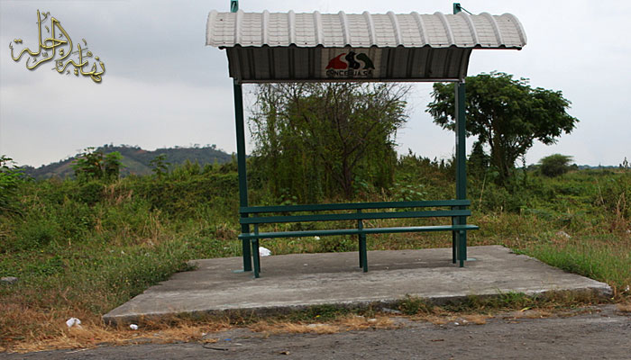 في الطريق قبيل دخول المدينة واحدة من نقاط انتظار النقل المنتشرة على طوال الطرق في البلاد