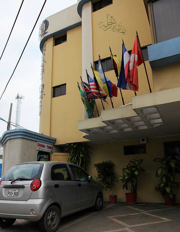 الخنفساء بعد كثرة العناء تقف جوار الفندق في مدينة غواياكيل