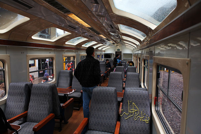 القطار من الداخل مزودا بزجاج من الأعلى لرؤية المناظر