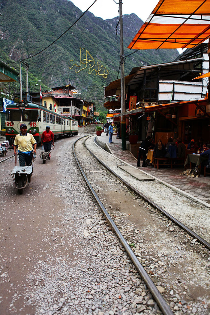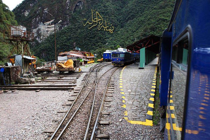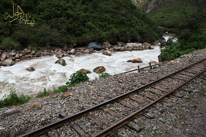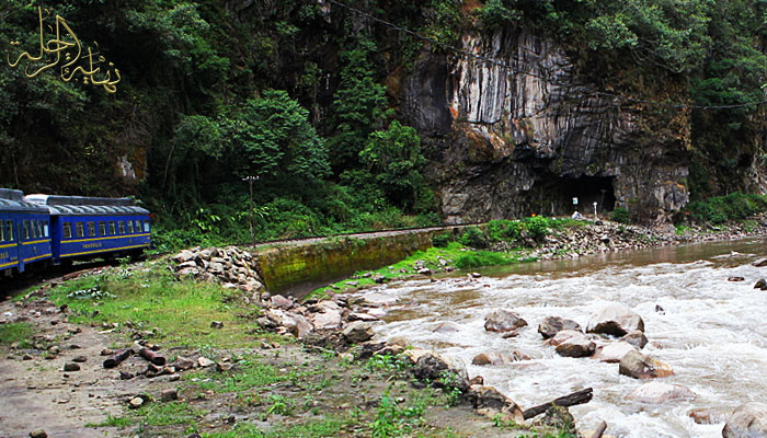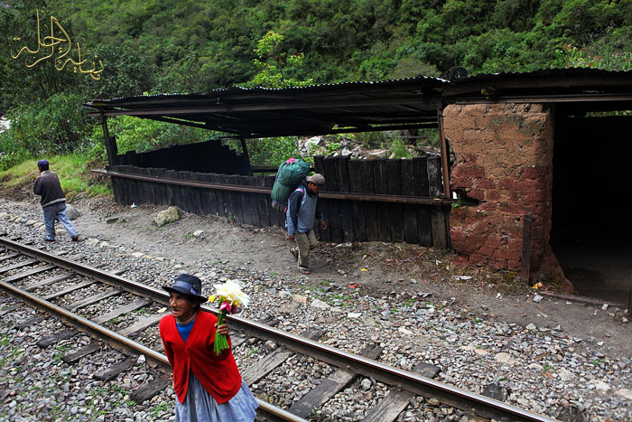 محطة القطار الذي يسير محاذياً للنهر حتى قرية Aguas Calientes