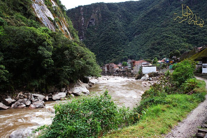 قرية Aguas Calientes عبارة عن قرية صغيرة قامت بعد اكتشاف المدينة الضائعة ماتشو بيتشو .. تقدم خدمات للسياح كالفنادق والمواصلات وبعض المنتجات المحلية.. وتتميز بمناخ رائع يميل للبرودة .. وبصوت عالي للماء الذي يجري من حولها .. وبمناظر غاية في الجمال والروعة للجبال المحيطة بها. وهي بوابة ماتشو بيتشو الوحيدة.
