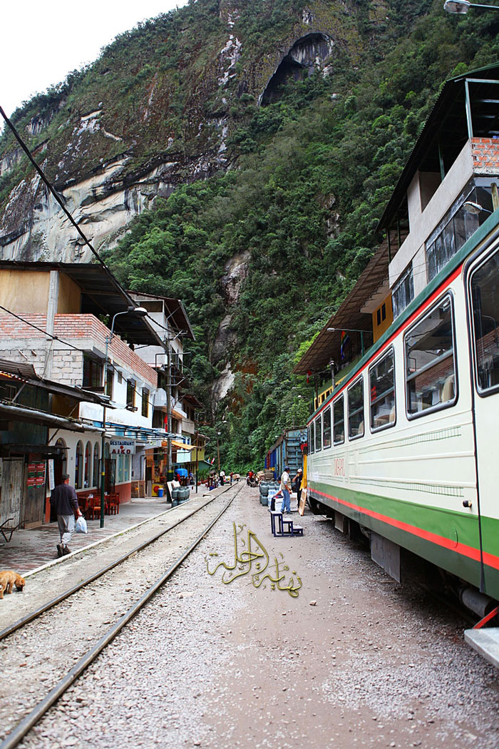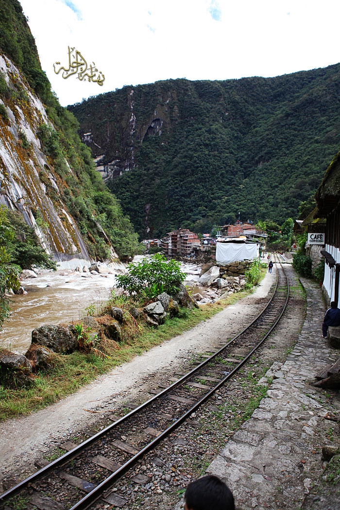 ها هي قرية Aguas Calientes تطل علينا بعد ساعة ونصف مرة كعشر دقائق في القطار خلفية