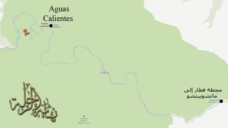 الجزء السابع والعشرون أهلاً وسهلاً بكم مع أخوكم حمد العسكر في الجزء السابع والعشرون من رحلته في جبال الأنديز ( جمهورية بيرو ...إلى ما قبل القلعة الضائعة ماتشو بيتشو Machu Picchu) قرية Aguas Calientes السلام عليكم ورحمة الله .. أعزائي الكرام في هذا الجزء سوف أعرض لكم الطريق إلى أقرب نقطة نحو القلعة الضائعة إلى قرية Aguas Calientes .. والذي يمر محاذياً للوادي المقدس لديهم .. حيث مناظر خلابة وجميلة تحكي عظيم صنع الله في أرضه .. وحتى لا أكثر من الإسهاب .. سأحاول قدر المستطاع أن أجعل الصور تتكلم عن نفسها. ولكن قبل ذلك أذكر لكم بأنني خرجت في الصباح من فندقي .. وقد أخبرني البعض أن السيارة لا تصل إلى وجهتي .. بل هناك محطة قطار علي أن أركب منها ... إلى أسفل القلعة .. ثم أركب وسيلة نقل أخرى للأعلى. وسيتضح ذلك من خلال الخرائط والشرح.