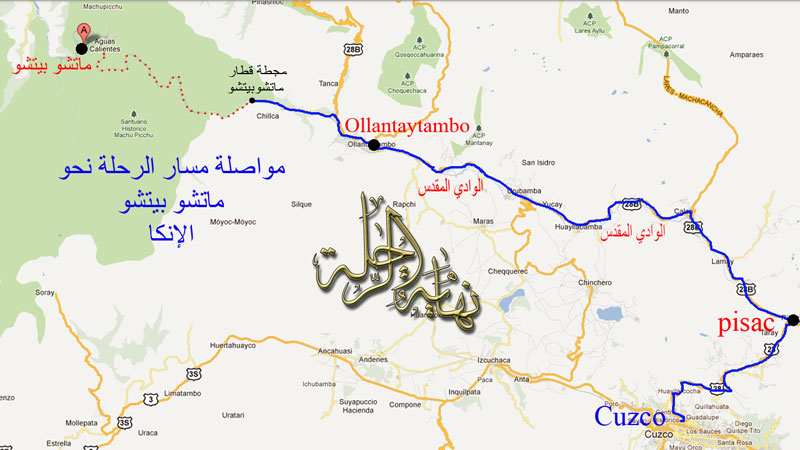 مسار الرحلة نحو أبرز معالم البيرو الطريق نحو ماتشو بيتشو .. النقاط هي طريق القطار